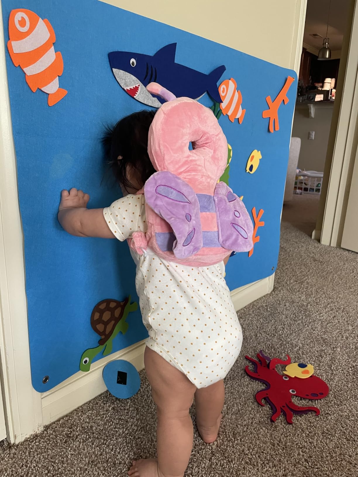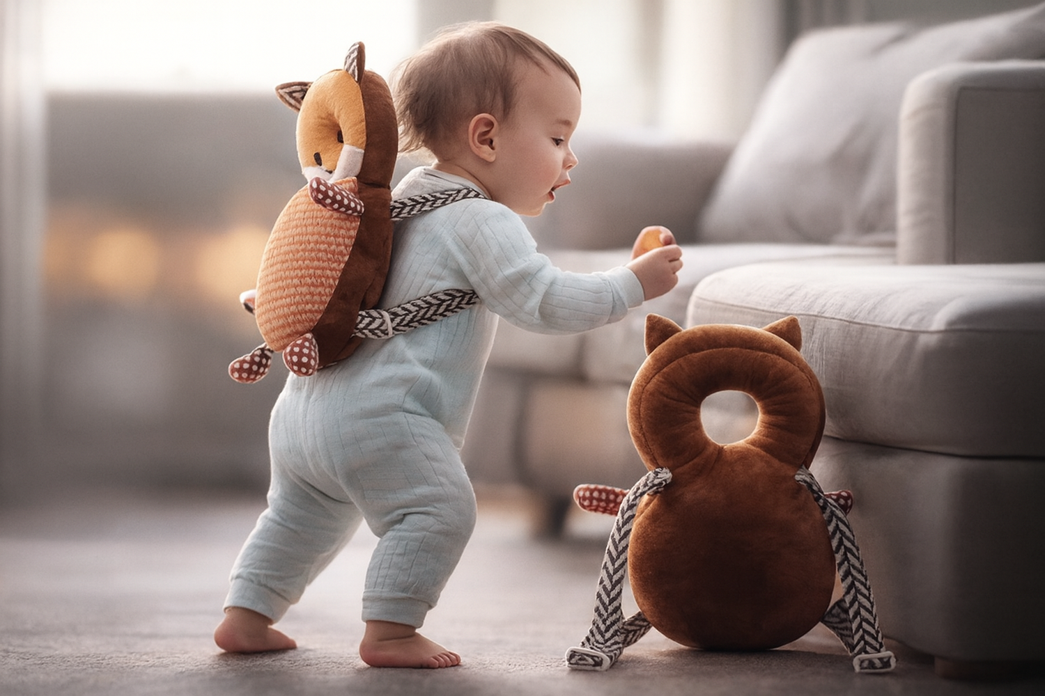 Each time your baby falls backward, this backpack gently catches them. It prevents pain and turns tears into smiles.